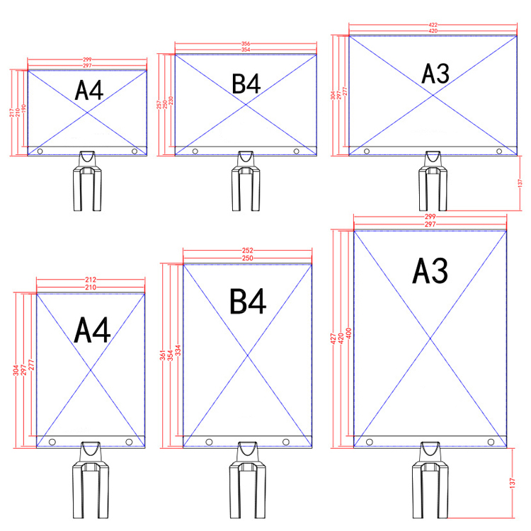 With one piece acrylic panel keeping the A4, B4 and A3 paper upright and protected;